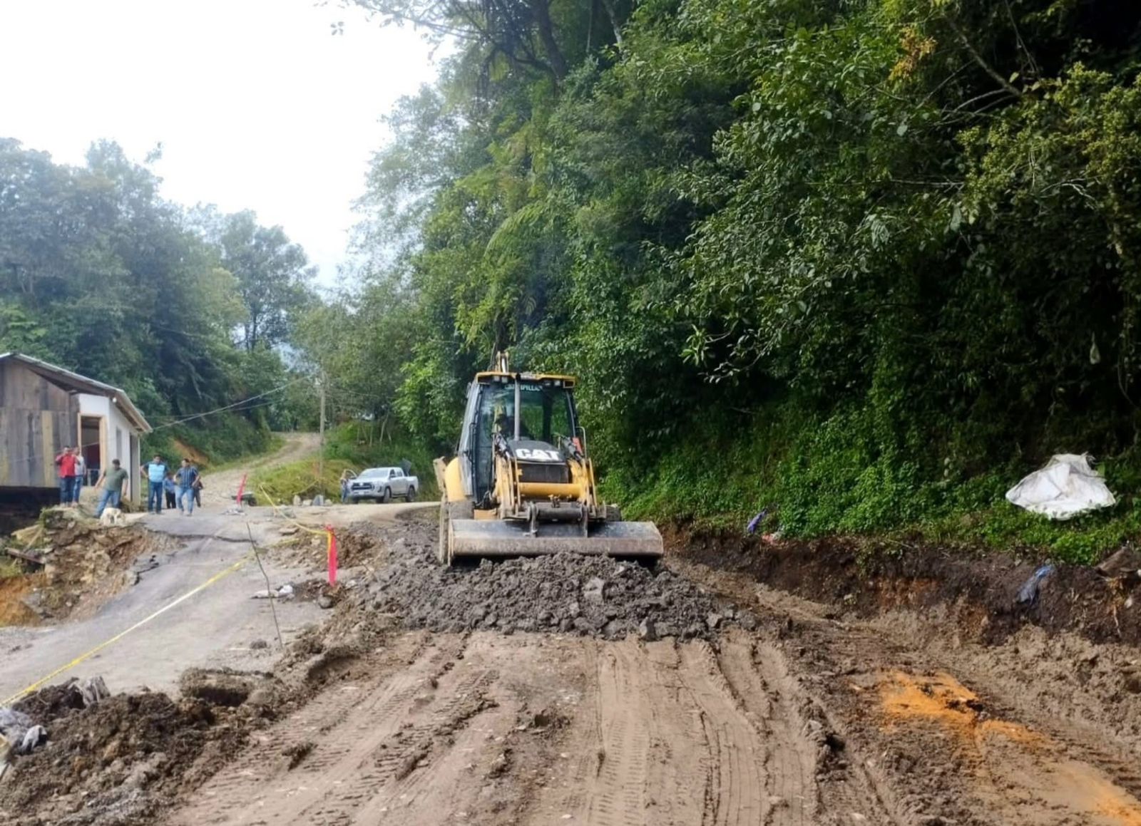 En el municipio de San Miguel Eloxochitlán, se continúa trabajando en el tramo carretero Eloxochitlán-El Mirador, zona afectada por un deslizamiento de tierra.