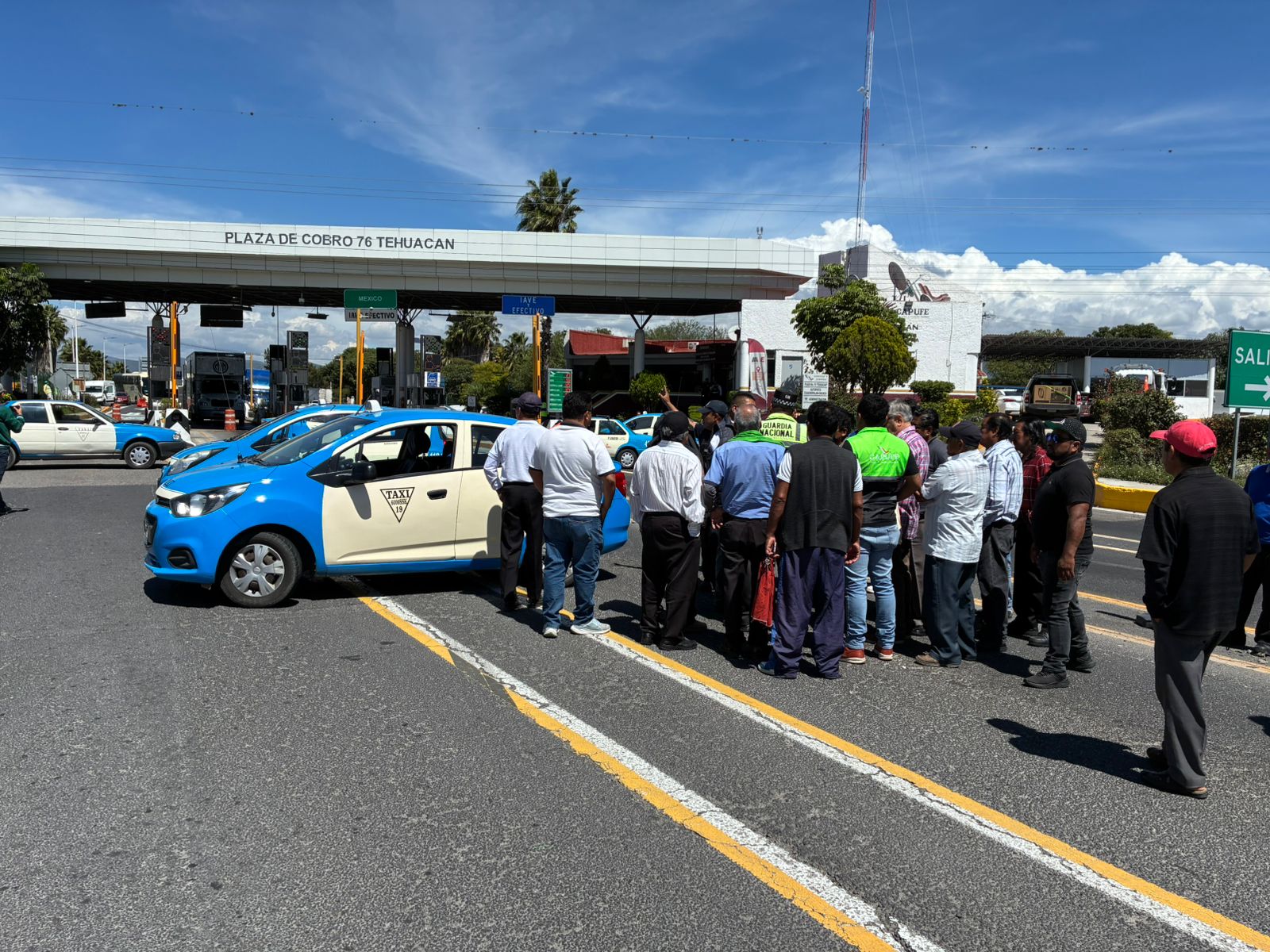 Taxistas de Tehuacán realizaron el bloqueo total de la caseta de cobro 76, que se ubica en San Lorenzo Teotipilco, exigen el retiro total de unidades de aplicación.