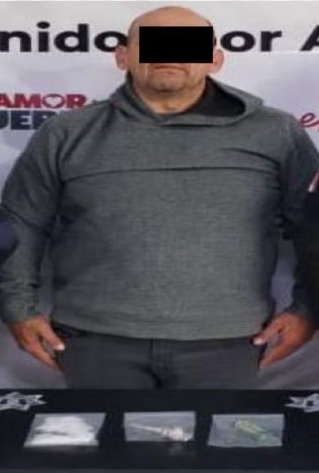 La persona asegurada fue identificada como Edwin N, alias “El Cholo”, a quien se le localizaron 23 bolsas tipo ziploc con sustancia con características propias de la metanfetamina, durante la intervención policial.
