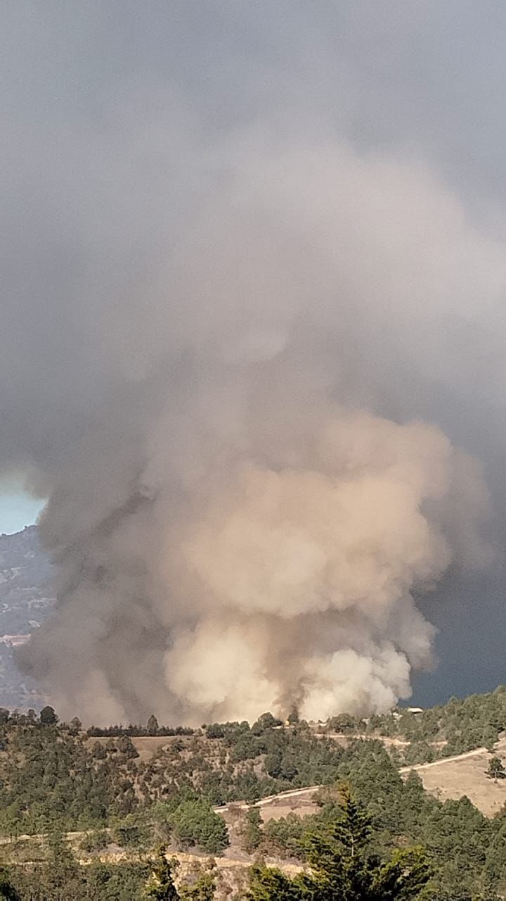 Un incendio forestal se registra en la comunidad de Yahualutzingo, perteneciente al municipio de Vicente Guerrero, el cual ha provocado la afectación de diversas especies de pino en la zona.