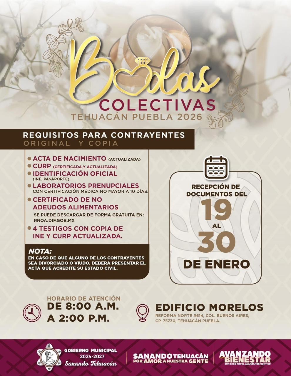 En Tehuacán se realizará el evento denominado Bodas Colectivas 2026, donde las parejas podrán formalizar su unión el próximo 14 de febrero.
