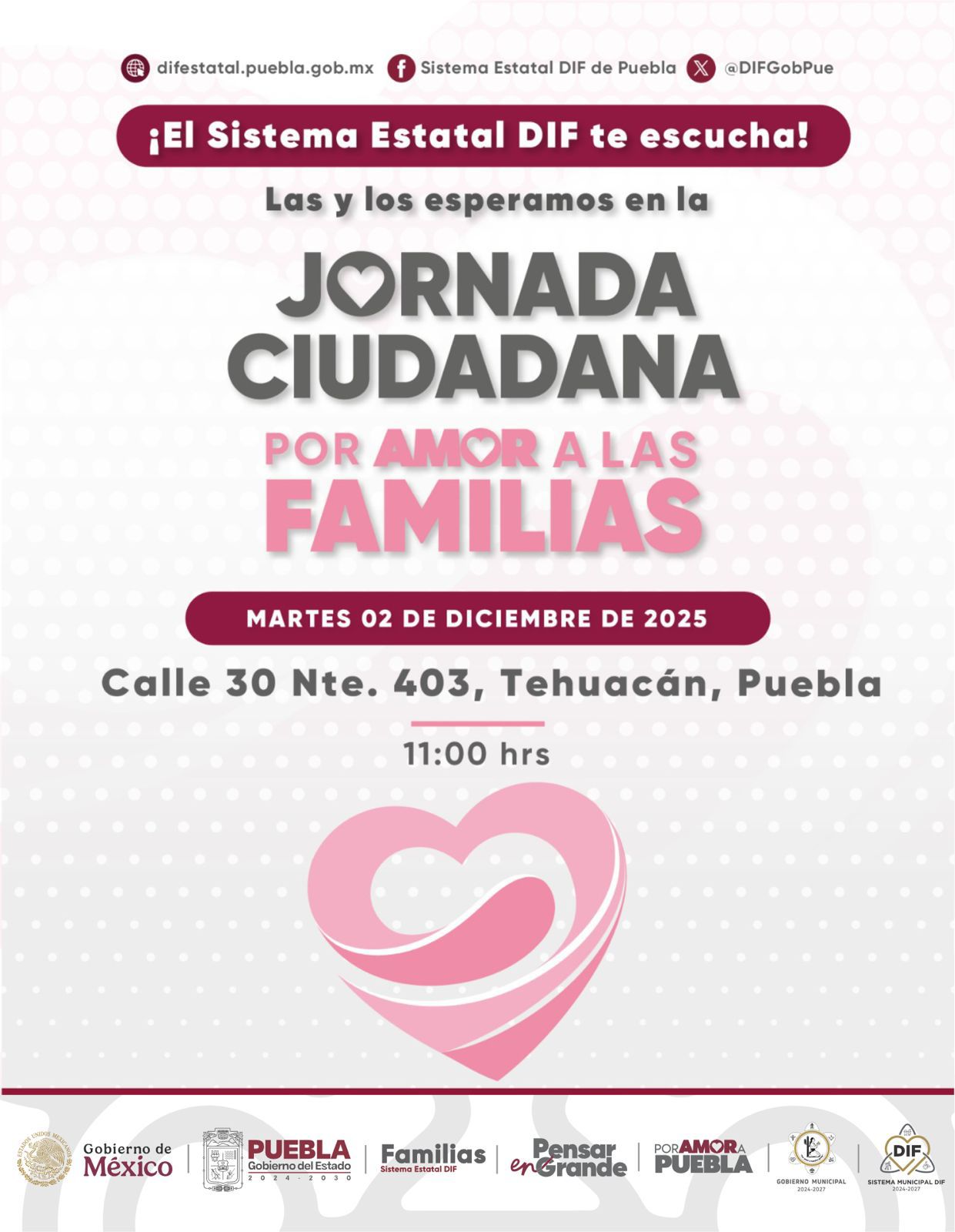 SEDIF realizará jornada ciudadana “Por amor a las familias” mañana martes en Tehuacán, ofertará diversos servicios para la población.