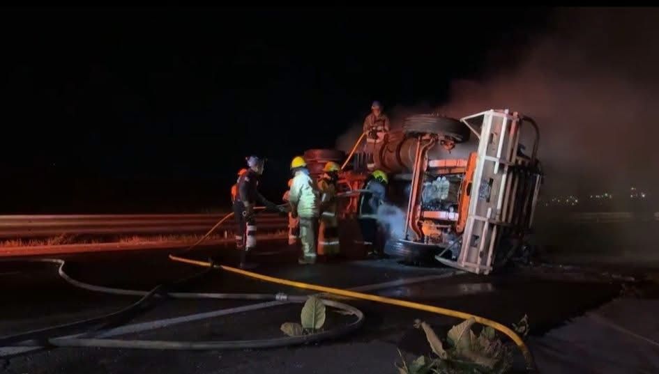 La volcadura e incendio de un tráiler en la carretera Cuacnopalan-Oaxaca, a la altura del kilómetro 52, provocó una fuerte movilización de cuerpos de emergencia de Tehuacán.